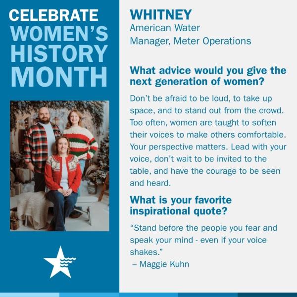 Throughout March, American Water recognizes Women’s History Month by celebrating the women who strengthen our industry, support our communities and help shape the future of water.